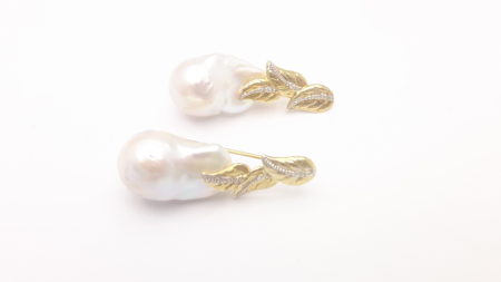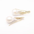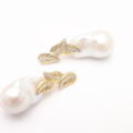 “Viburno Earrings” set in yellow gold plaqued sterling silver, white sapphires and baroque natural pearls.